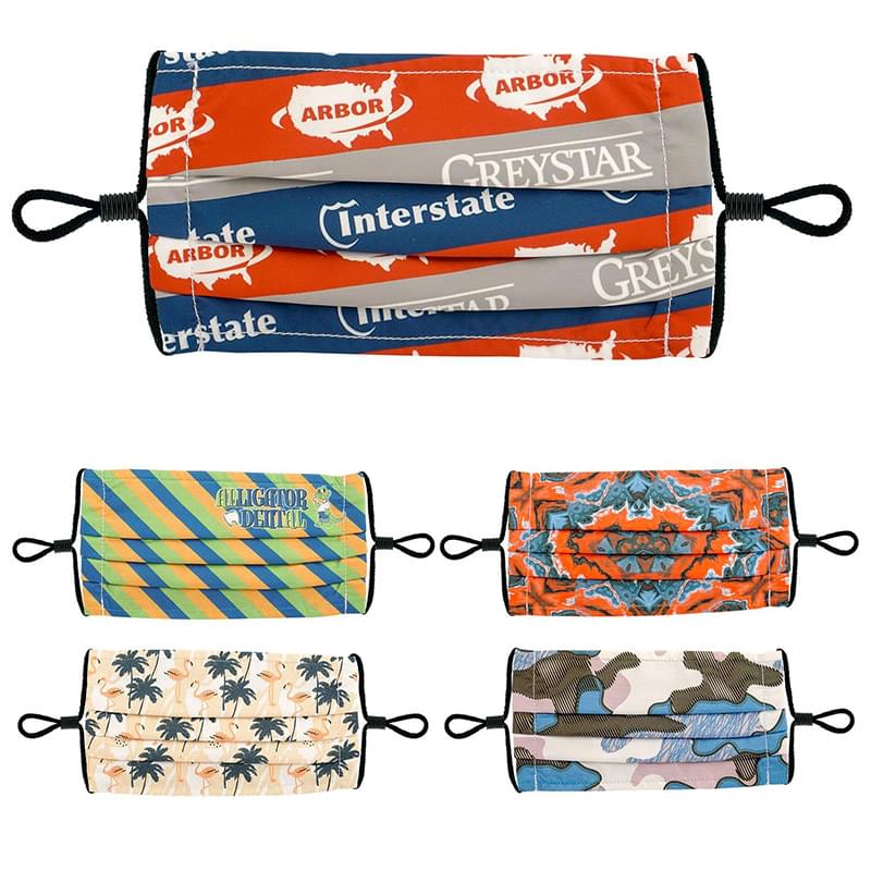Full Color Sublimation 3-Ply Washable & Reusable Cotton/Polyester Face Mask with Ear Loop Adjusters