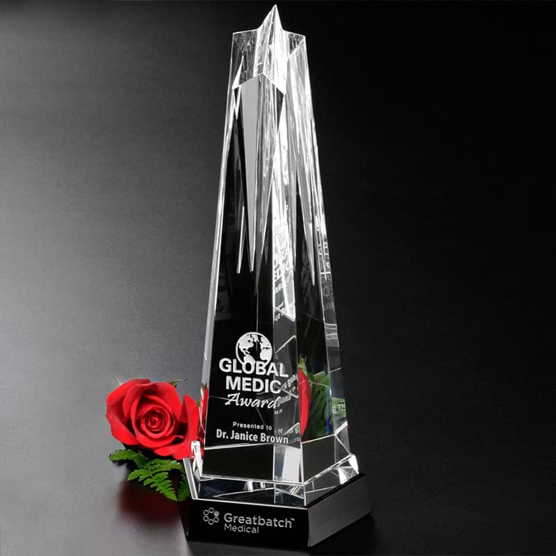 Multi-Faceted Clear Crystal with Blue and Black Base